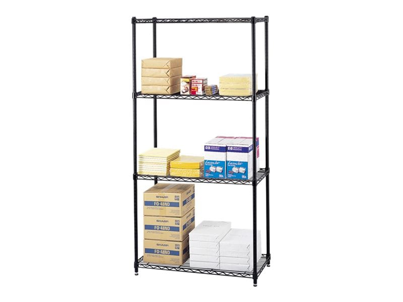 Sturdy steel constructed wire shelving unit with strong steel posts and adjustable levelling feet with plastic caps to protect floors. Each shelf accommodates up to 500lbs. Assembles in minutes ... View Video